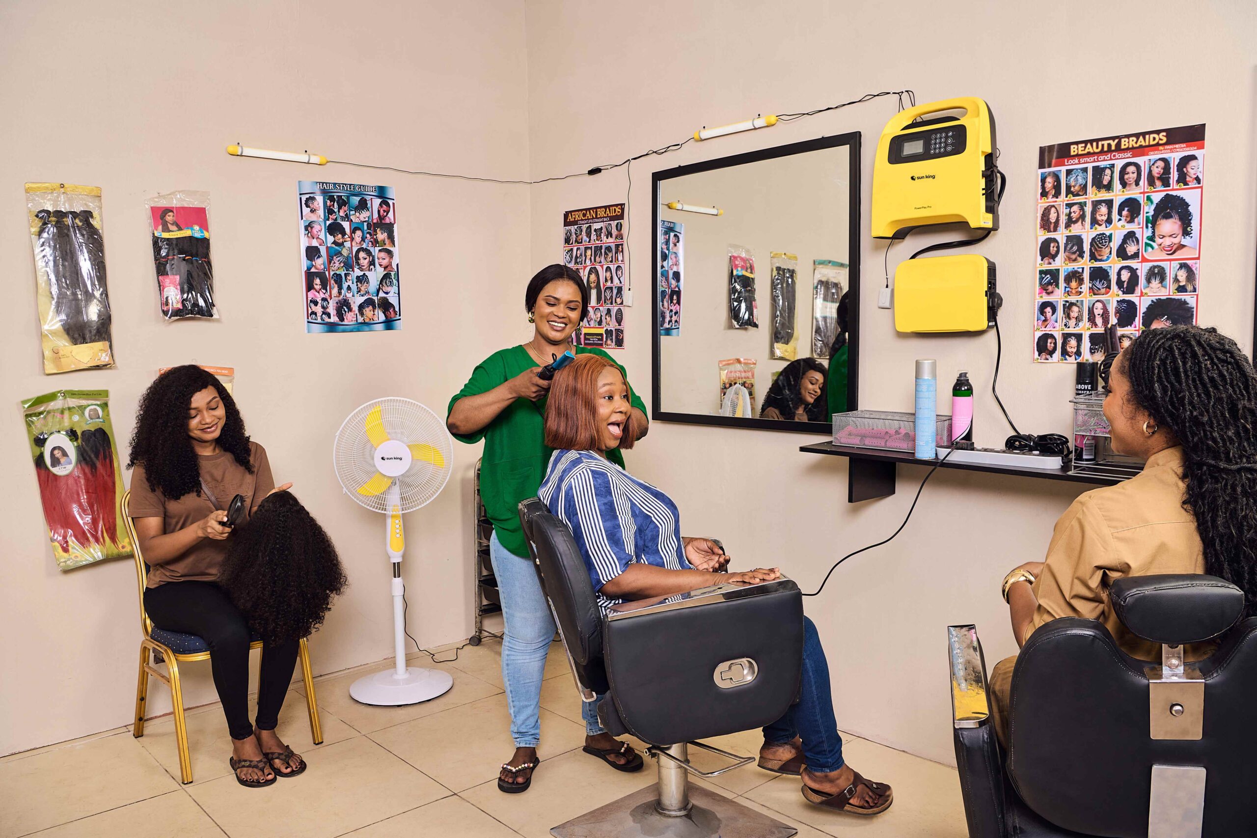 - Sun King’s most powerful solar home systems can charge smartphones, and can power DC Sun King appliances like the HD TV and pedestal fan.