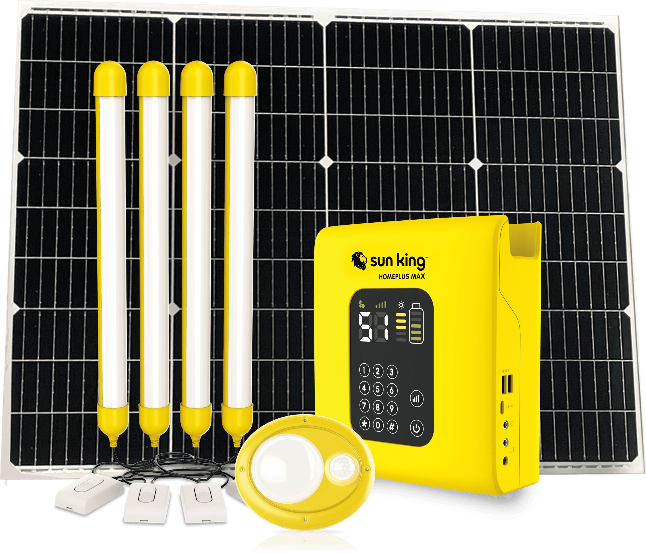 The HomePlus Max is Sun King’s most powerful solar home system. It provides lighting as bright as a modern, grid-powered home, and can power a range of devices and appliances simultaneously, including the Sun King Pedestal Fan.