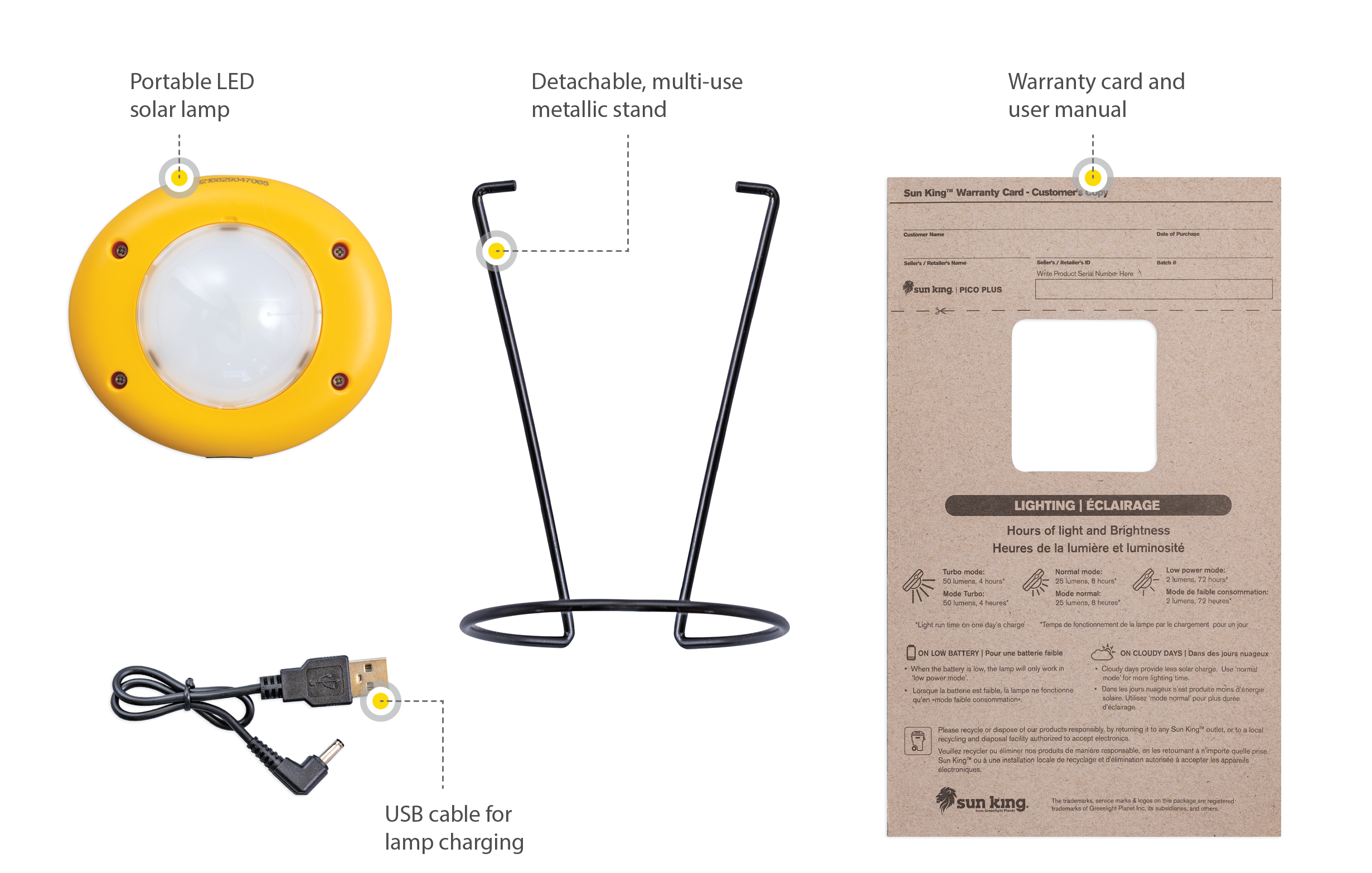 Balancing performance with affordability, the Pico Plus is a practical on-the-go lighting solution suitable for work, study, or travel. Designed with a long-lasting battery, and an inbuilt solar panel for charging, the Pico Plus delivers light up to 5 times brighter than a kerosene lamp.